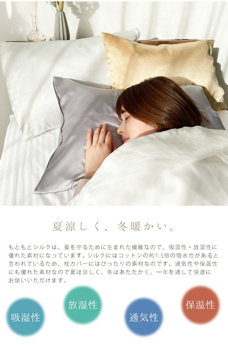 枕カバー 43×63cm 枕カバー 絹 6Aランク 日本製 シルク 枕カバー 両面 シルク100% ファスナー式 ヘアケア ブルー