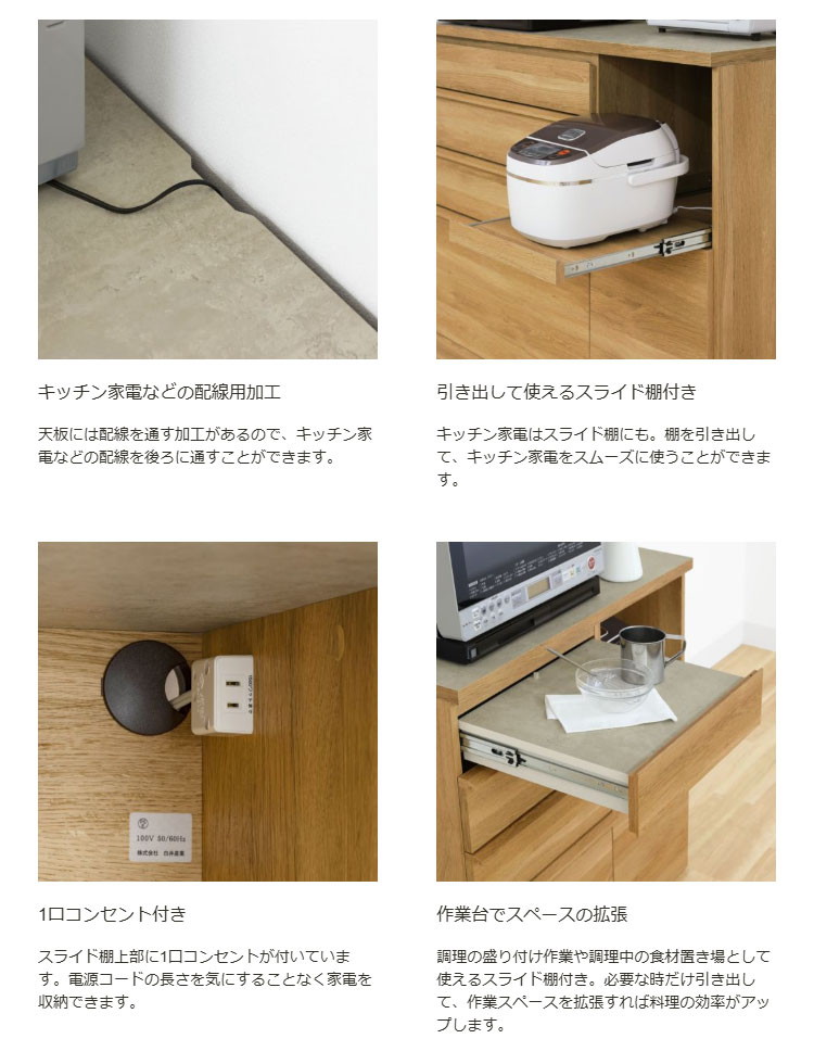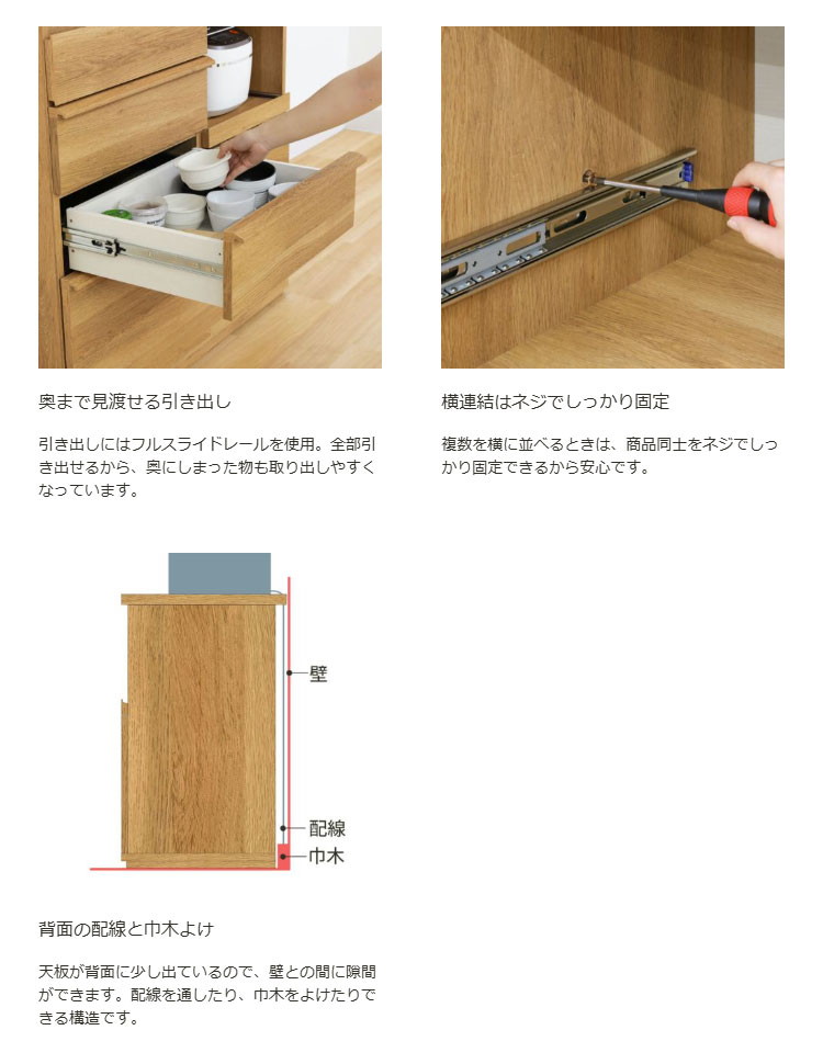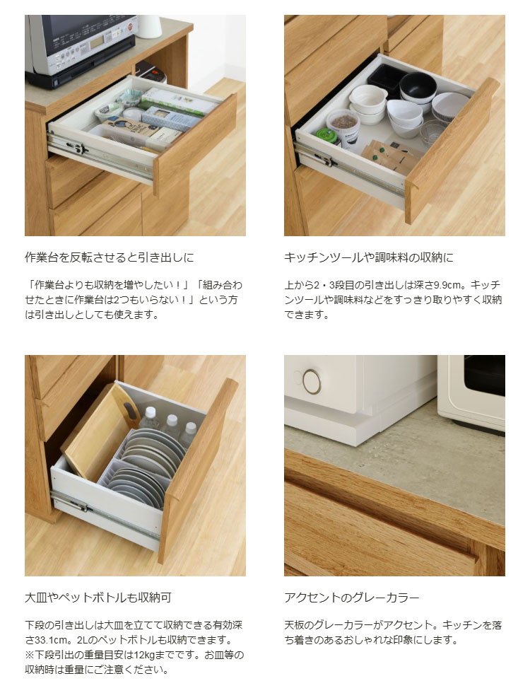 素材・加工:【本体素材】天板、引出底板(作業台)/合成樹脂化粧繊維板(メラミン)、その他/プリント紙化粧繊維板【表面素材】プリント紙化粧繊維板