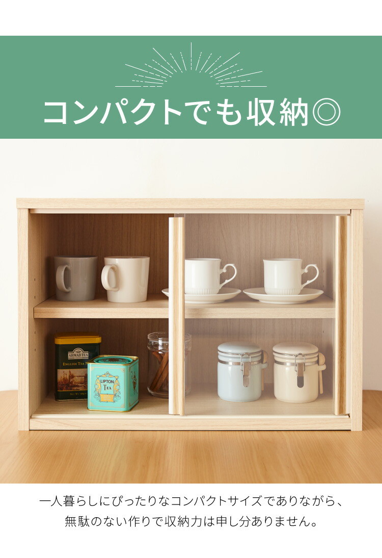 食器棚 ミニ フルニコ 幅56.6cm ナチュラル 収納 高さ38cm 木目調 ガラス扉 可動棚 コンパクト