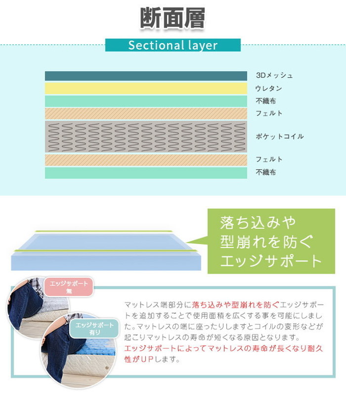 3Dメッシュポケットコイル、ウレタン、フェルト25kg/立方メートル高さ:16cm