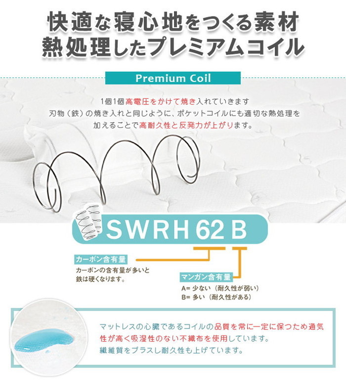 ポケットコイル クイーン Qサイズ マット グレー 高耐久ウレタン ポケットコイルマットレス Q マットレス