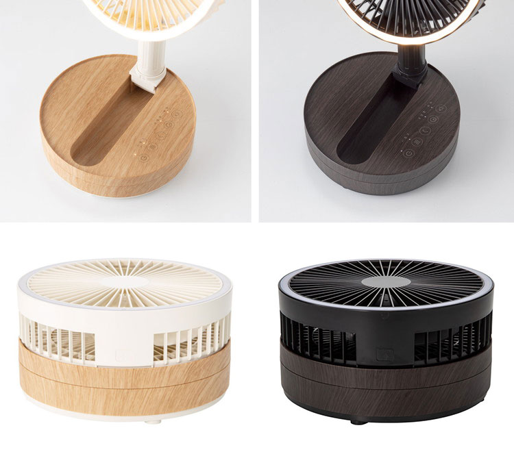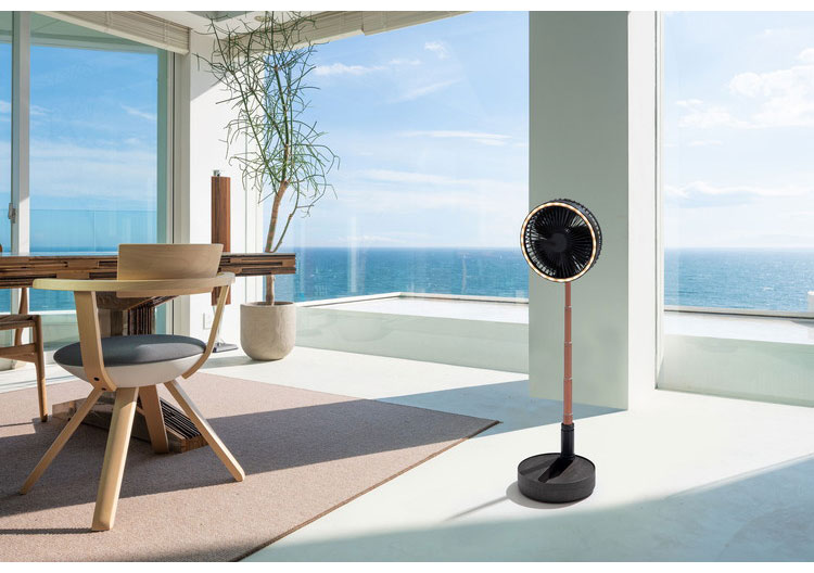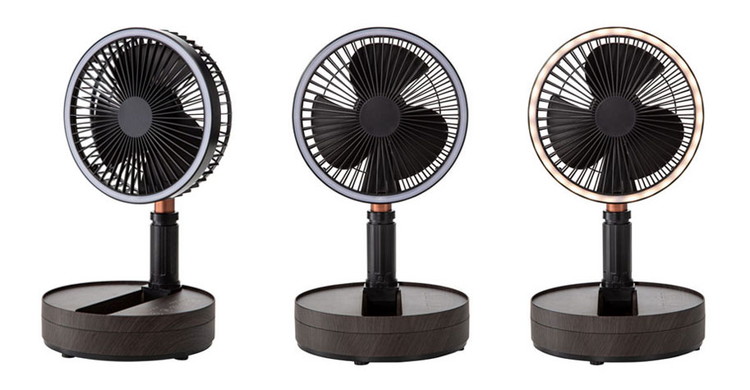 扇風機とLEDライトを融合し、卓上でデスクファンとしても、床置きでリビングファンとしても使用できる伸縮自在の充電式マルチフォールディングファンです。