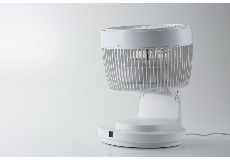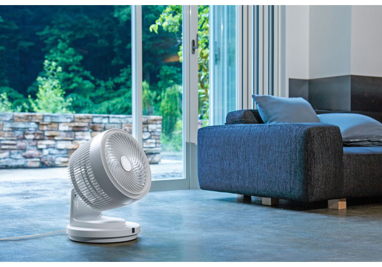 独自設計のファンシステムとターボモードの搭載によりパワフルな送風を実現したターボサーキュレーターです。23cm径の大きな羽根で直進性の高い風を送り、13m先まで風が届く大風量で送風到達距離が飛躍的に向上しました。上下左右の立体的な首振り運転でお部屋の隅々まで効率良く空気を循環させ、エアコンとの併用で冷暖房の効率をアップします。操作パネルはタッチセンサーを採用し、付属のリモコンで離れた場所からの操作も可能です。