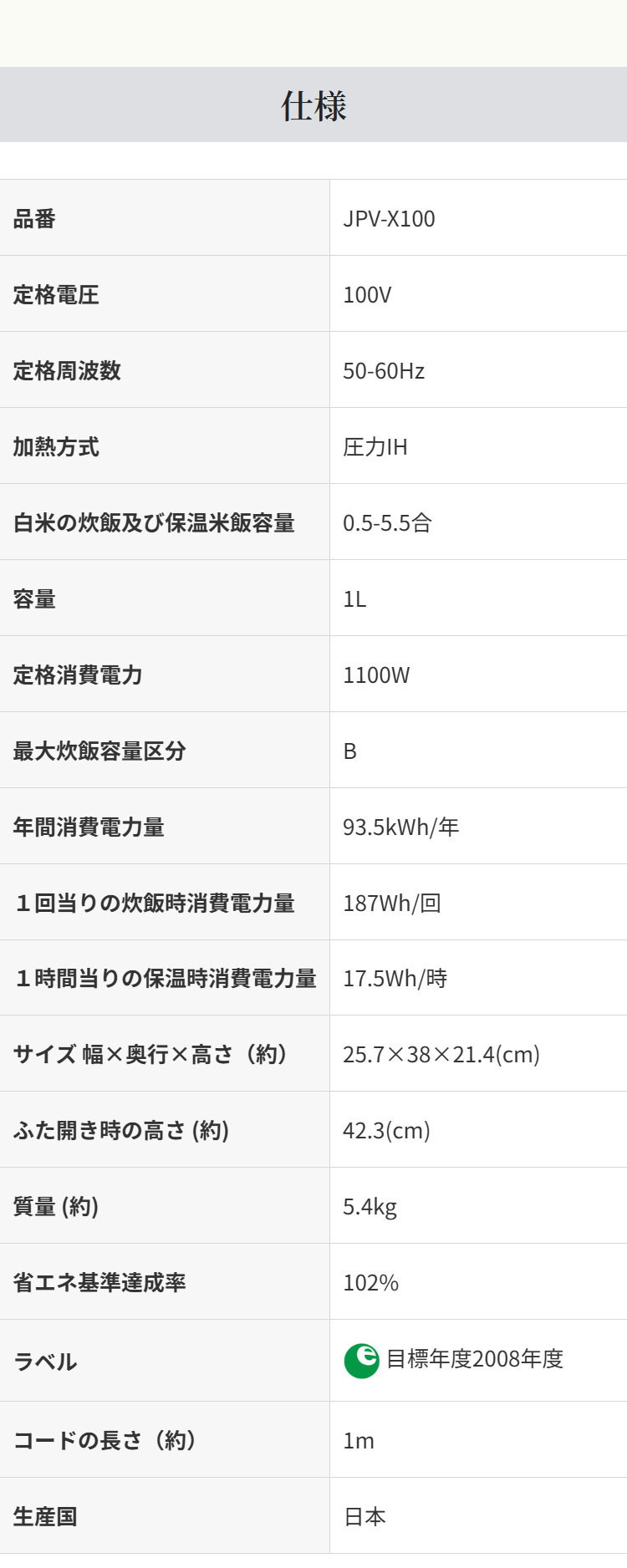 タイガー TIGER 圧力IHジャー炊飯器 5.5合 ホワイト 土鍋蓄熱コート釜 お手入れ簡単 少量高速 旨火 JPV-X100WO