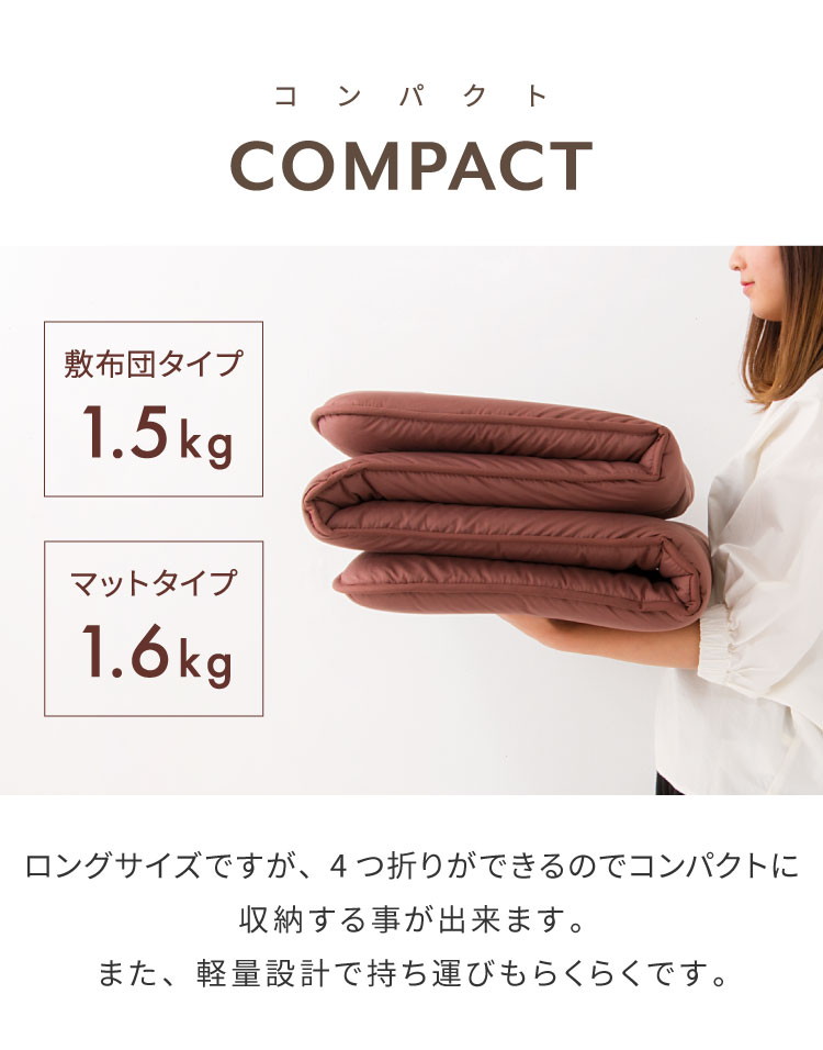 | 重量 | 敷布団タイプ:1.5kg マットタイプ:1.6kg |