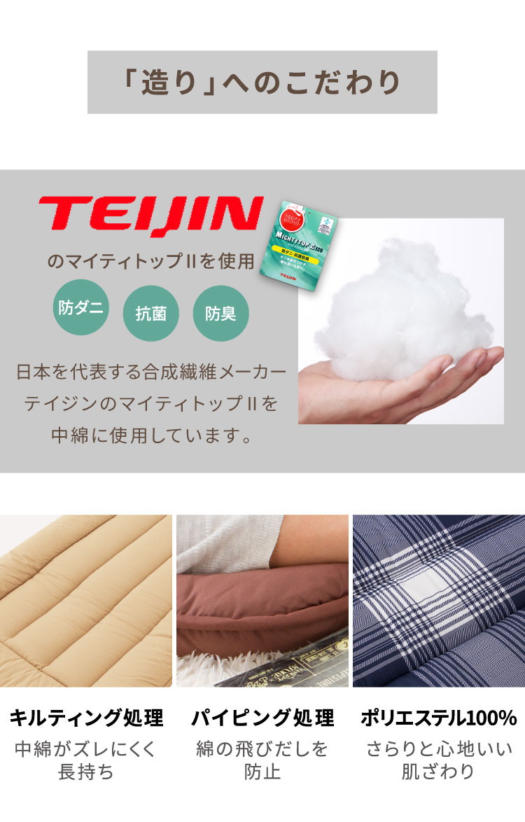 中材:巻綿+固綿 ポリエステル100%(帝人マイティトップII入)