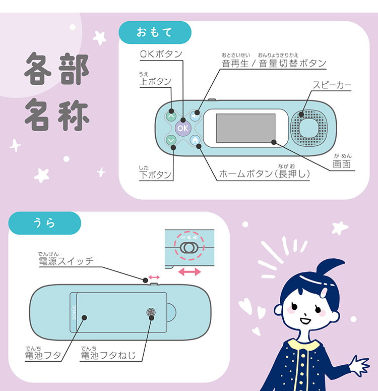 音ON(大小切替、リピート再生)/OFFえらべる♪OFFにすれば、図書館や電車の中でもお使いいただけます。スマホだと動画やゲームへ脱線しがちなお子さまに!スマホ依存対策にも。