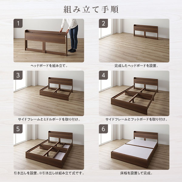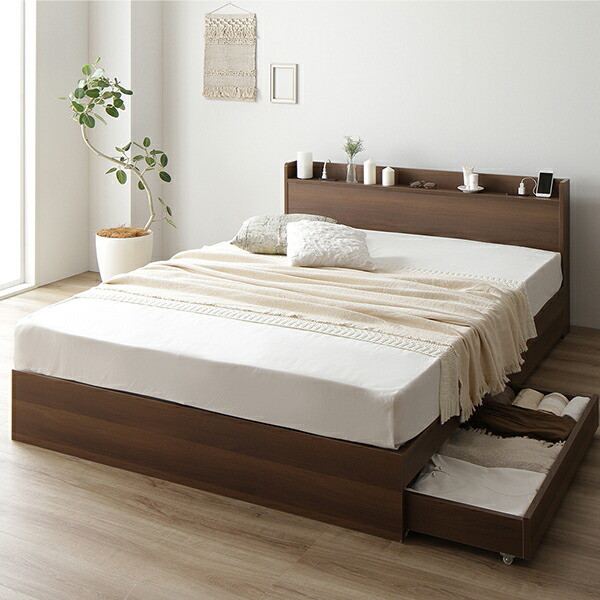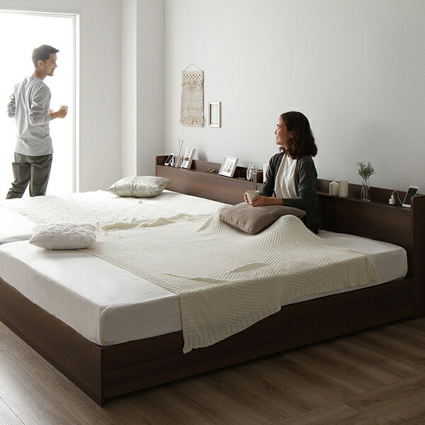 ベッド 収納付き 連結 引き出し付き キャスター付き 木製 宮付き 棚付き コンセント付き