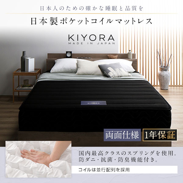 ベッド セミシングル 国産ポケットコイルマットレス付き ヴィンテージブラウン 低床 すのこ 照明
