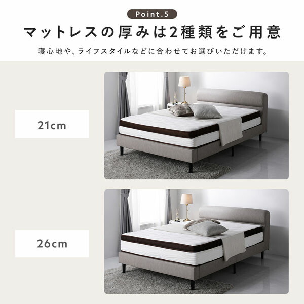 ベッド ローベッド ダブル 2層ポケットコイルマットレス付き 厚み21cm グレージュ 脚付き