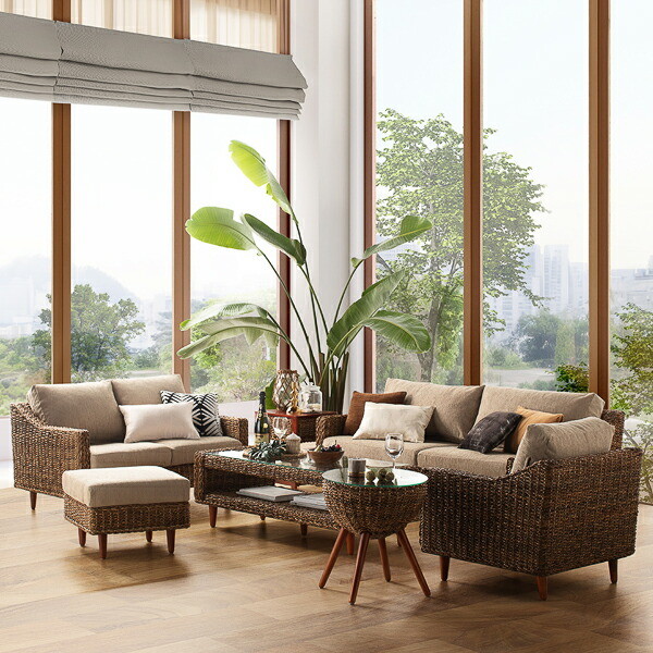 自然素材のアバカをフレームに使用し、贅沢なアジアンデザインソファへ。