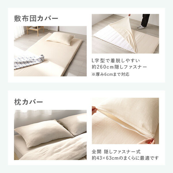・敷布団用3点セット:掛布団カバー+敷布団カバー+枕カバー