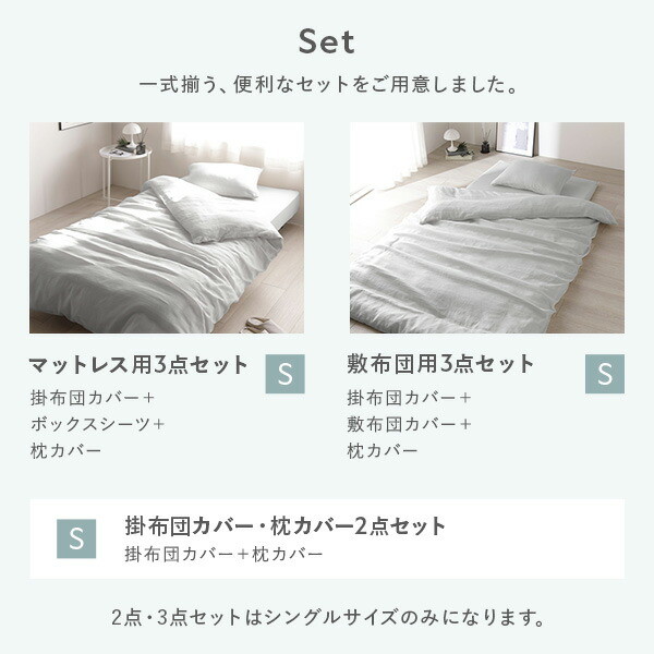 ・マットレス用3点セット:掛布団カバー+ボックスシーツ+枕カバー