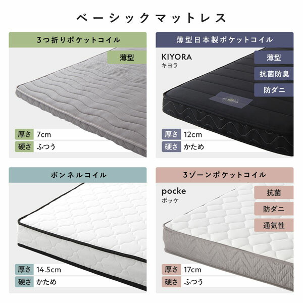 コイル数/ショート丈セミシングル:348、ショート丈シングル:435、シングル:465、セミダブル:589