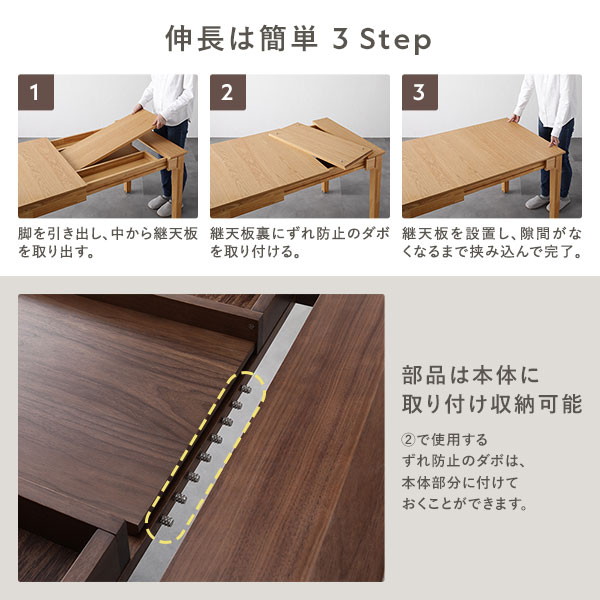 エクステンションテーブル 高さ72cm ウォルナットブラウン 約幅120~180cm 天然木 伸長式 3段階