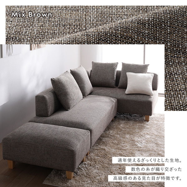 カウチソファ用替えカバー(ミックスブラウン・ミックスグレー):(1)43×33×10.5cm・3.7kg