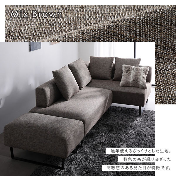 カウチソファ用替えカバー(ミックスブラウン・ミックスグレー):(1)43×33×10.5cm・3.7kg