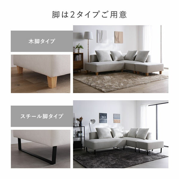 ・こちらは『カウチソファ+カウチソファ(木脚)+テーブル』の販売ページになります。2.5人掛けやオットマンは付属しません。