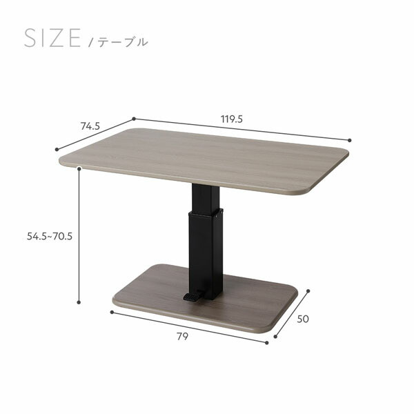 昇降テーブル:幅119.5×奥行74.5×高さ54.5~70.5cm