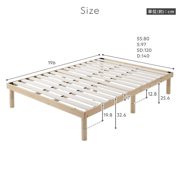 セミシングル:幅80×長さ196×高さ7/19.8/32.6cm