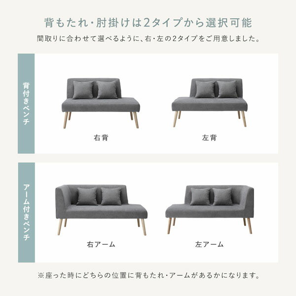 ・背付きベンチとアーム付きベンチの右・左は座った時にどちらの位置に背もたれ・アームがあるかになります。