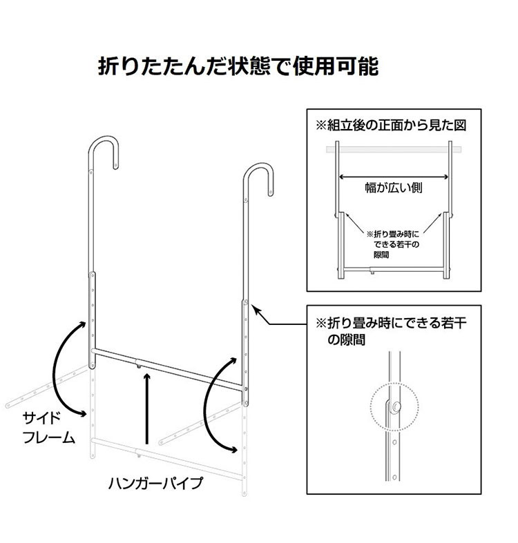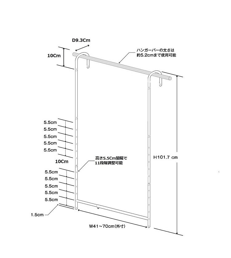 太さ約5.2cmまでのハンガーバーに対応しています。