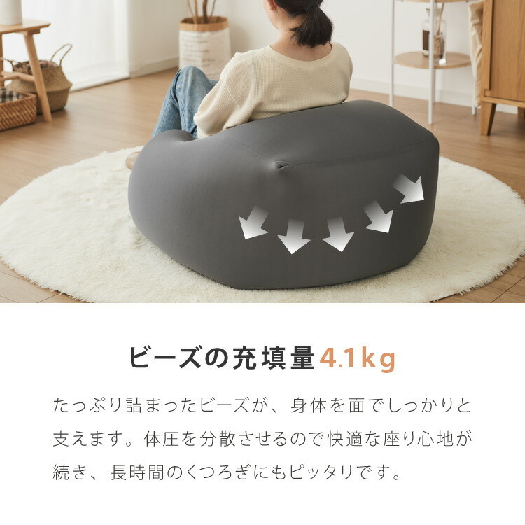 体重を預けるとビーズが動き、どんな姿勢にもフィットします。