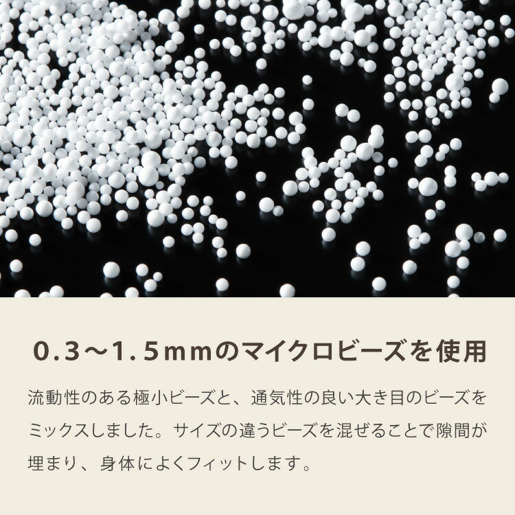 ビーズは0.3~1.5mmのマイクロビーズでソフトなさわり心地。