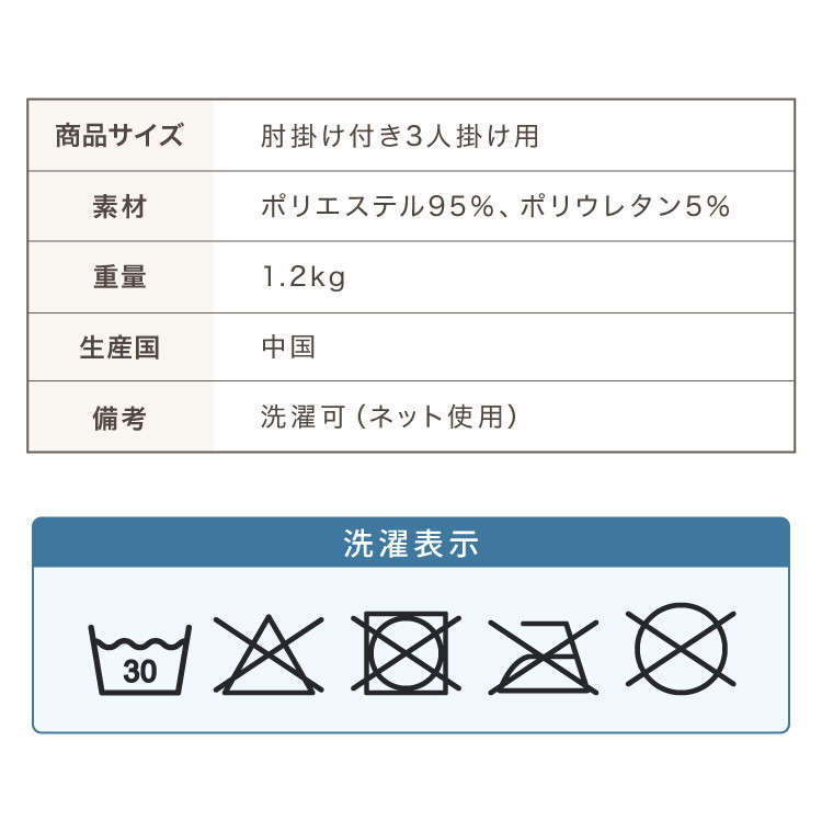 伸縮性のあるポリエステル&ポリウレタン素材を採用し、肘付き仕様のソファにぴったりフィット。