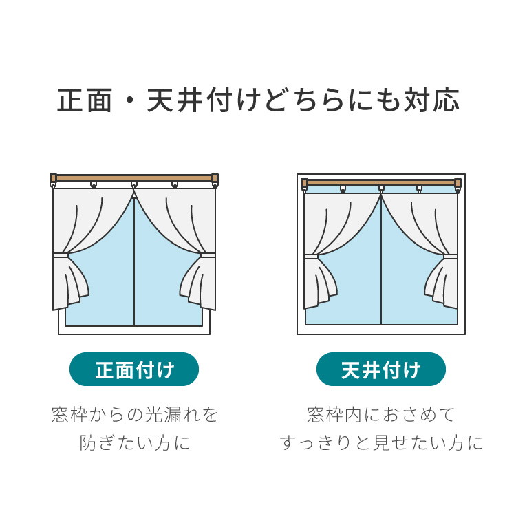 ダブルタイプなので、ドレープカーテン・レースカーテンのどちらも吊るす場合におすすめです。