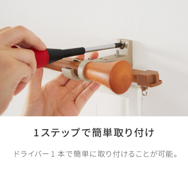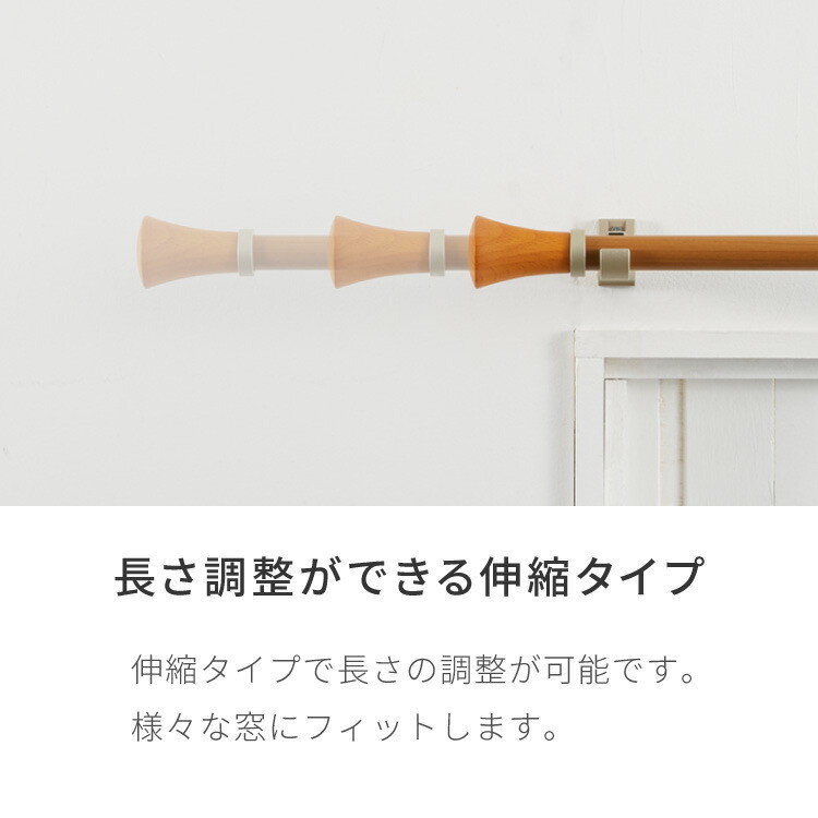 木質の風合いを楽しめる木目調伸縮式ポールタイプカーテンレール。