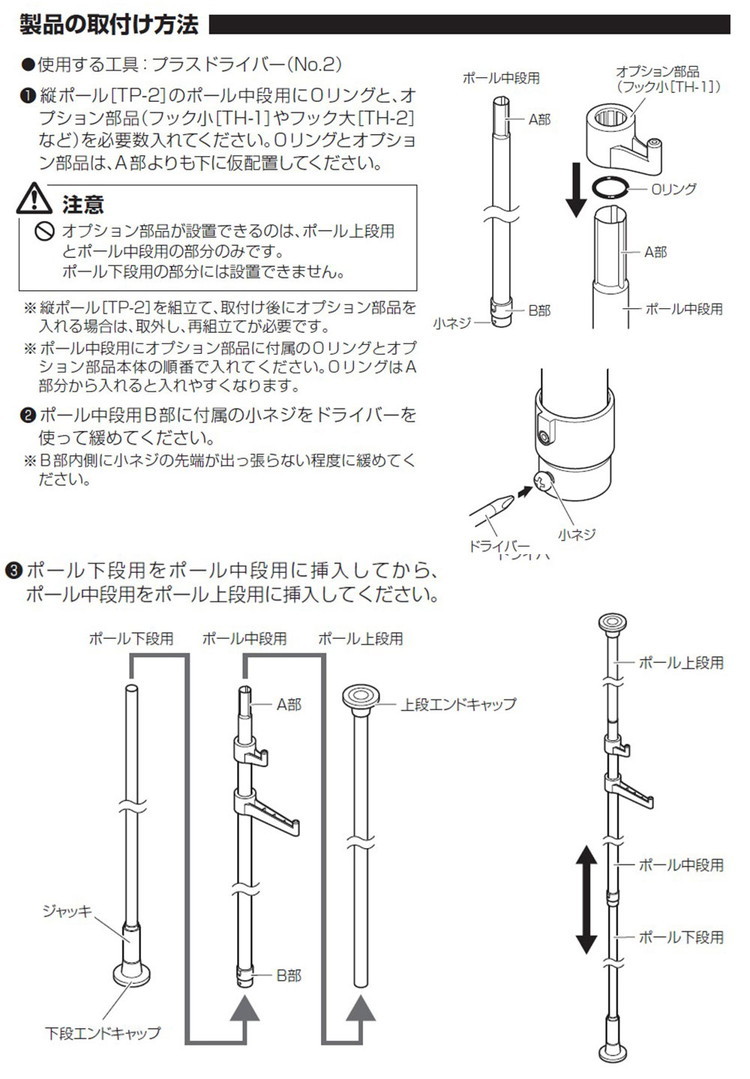 ・つっぱり棒を設置する際は、必ず取扱説明書をよく読んでから設置してください。