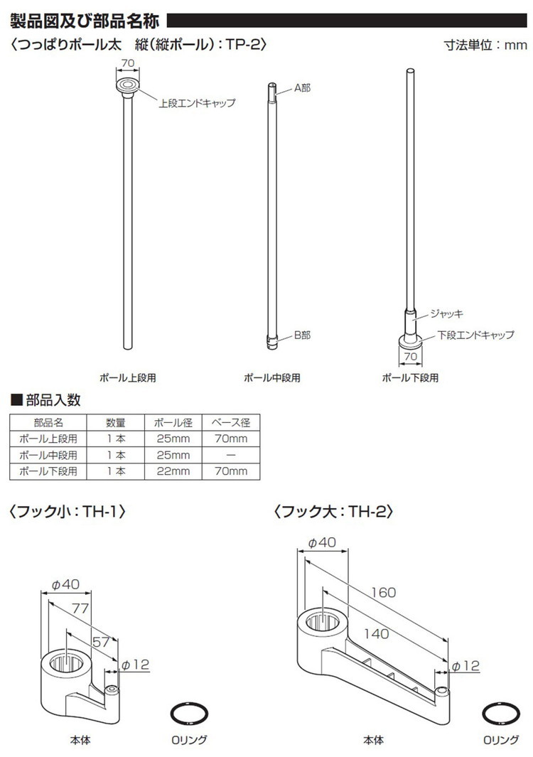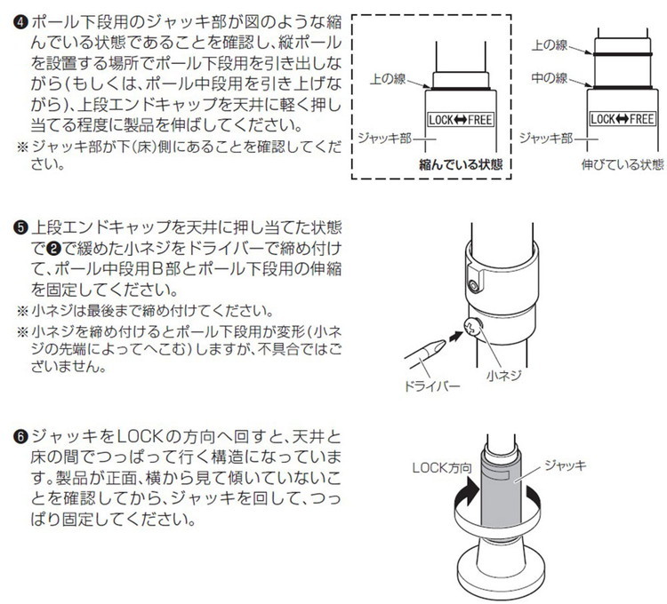 ・ジャッキ機構を採用したつっぱり棒なので簡単に確実に固定ができます。