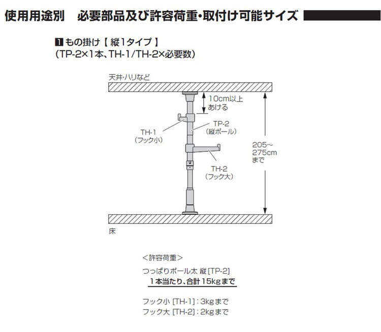 ・設置後は、安全にご使用いただくために、許容荷重以上のものを吊るさないようご注意ください。