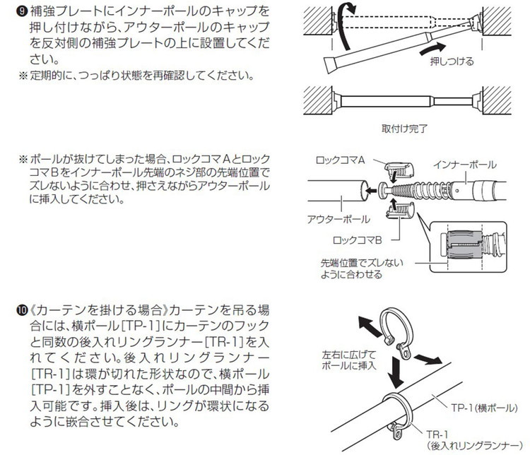 つっぱり棒を設置する際は、必ず取扱説明書をよく読んでから設置してください。