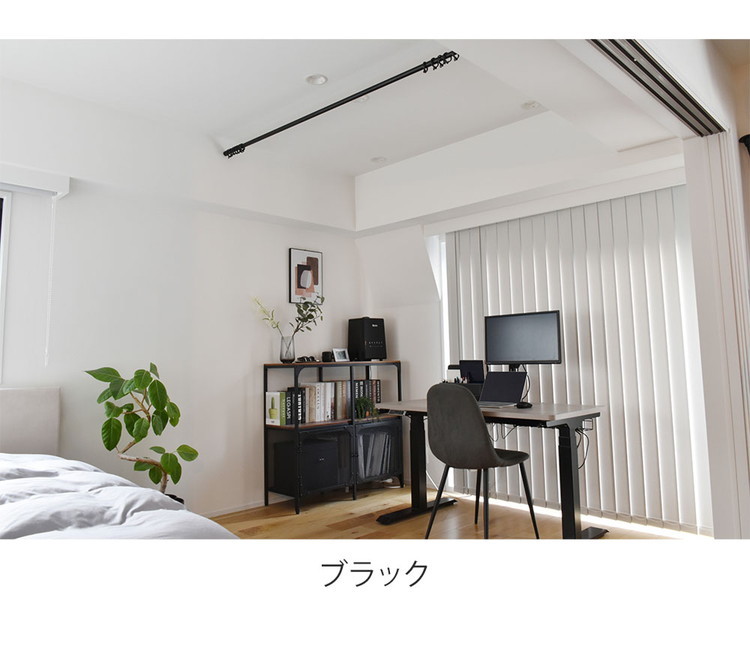 つっぱりポール リングランナー20個付き 幅120~200cm カーテンポール 突っ張り棒 間仕切りパーテーション ブラック