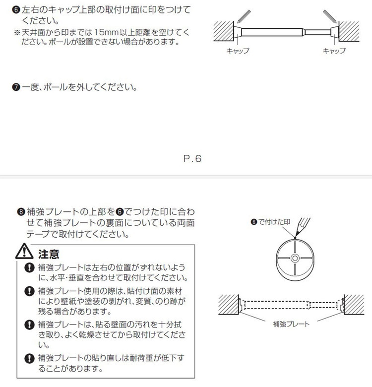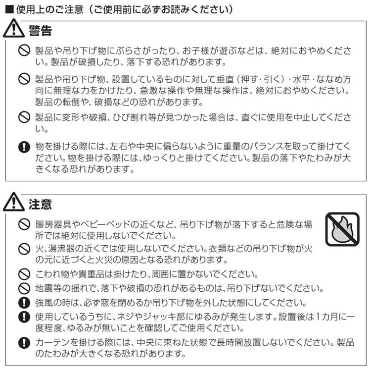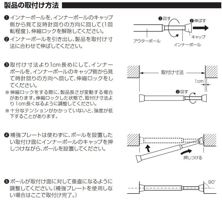 つっぱり棒を設置する際は、必ず取扱説明書をよく読んでから設置してください。