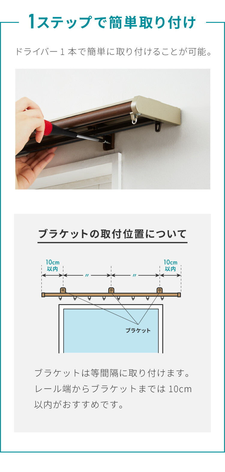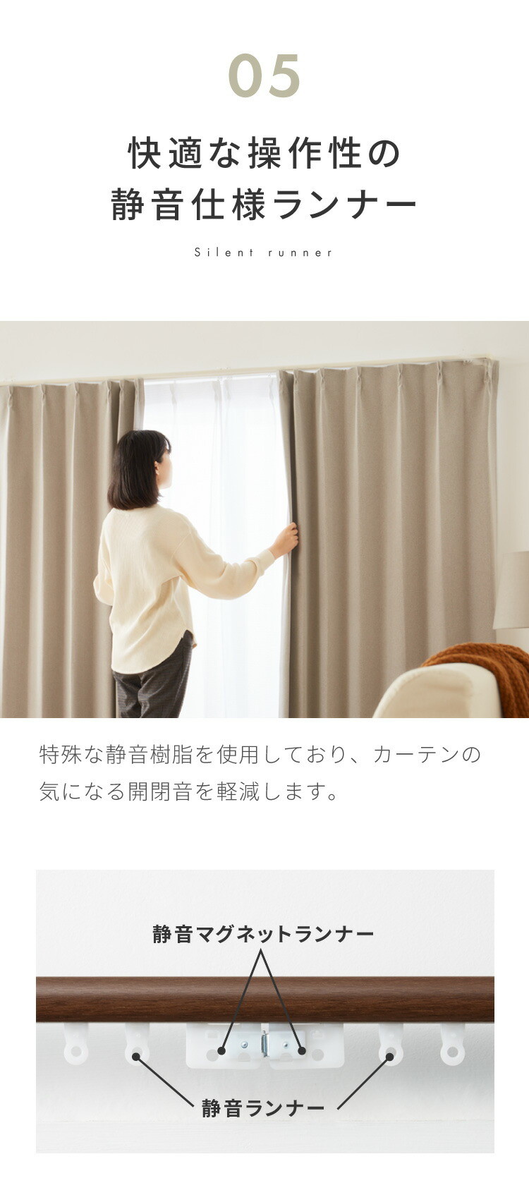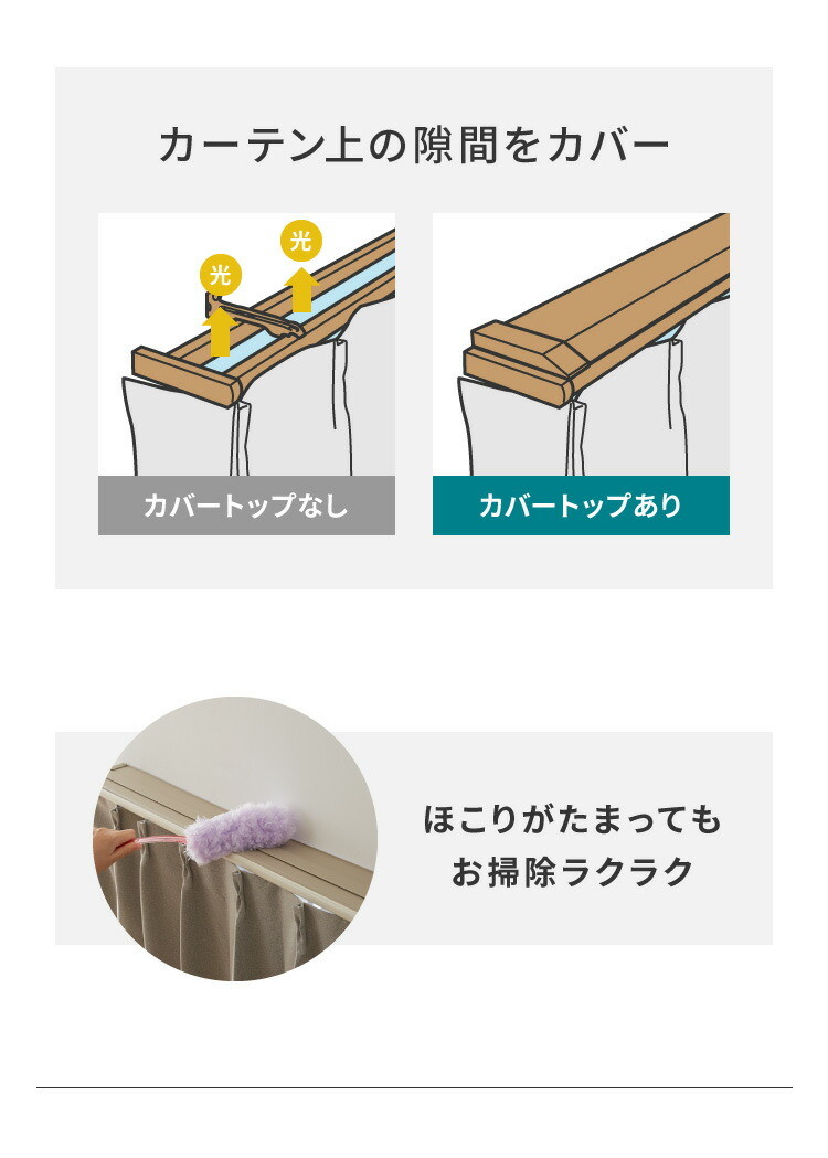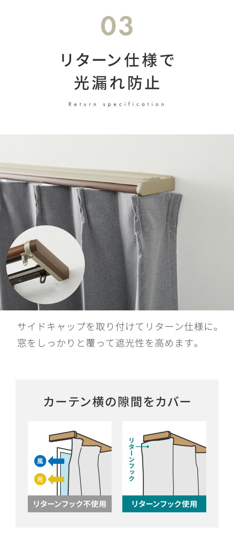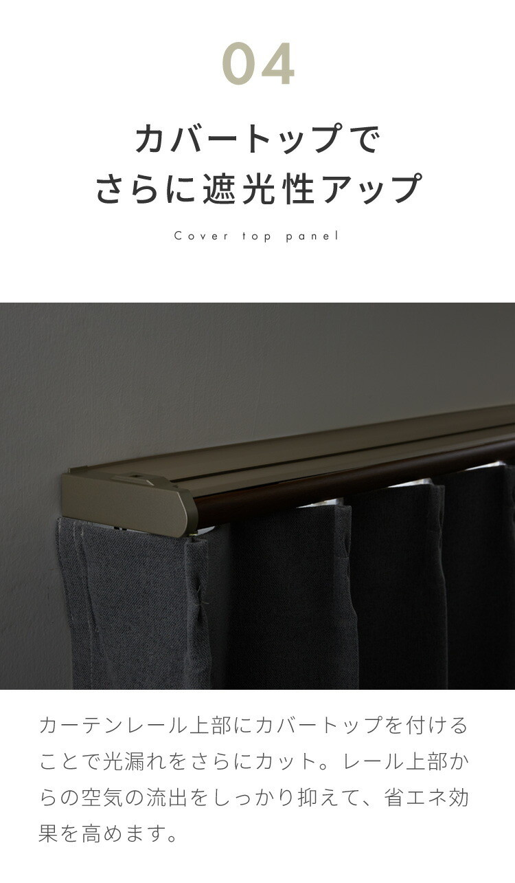 レール上部と横からの光漏れを軽減できる遮光カーテンレール。遮光カーテンにピッタリのレール。