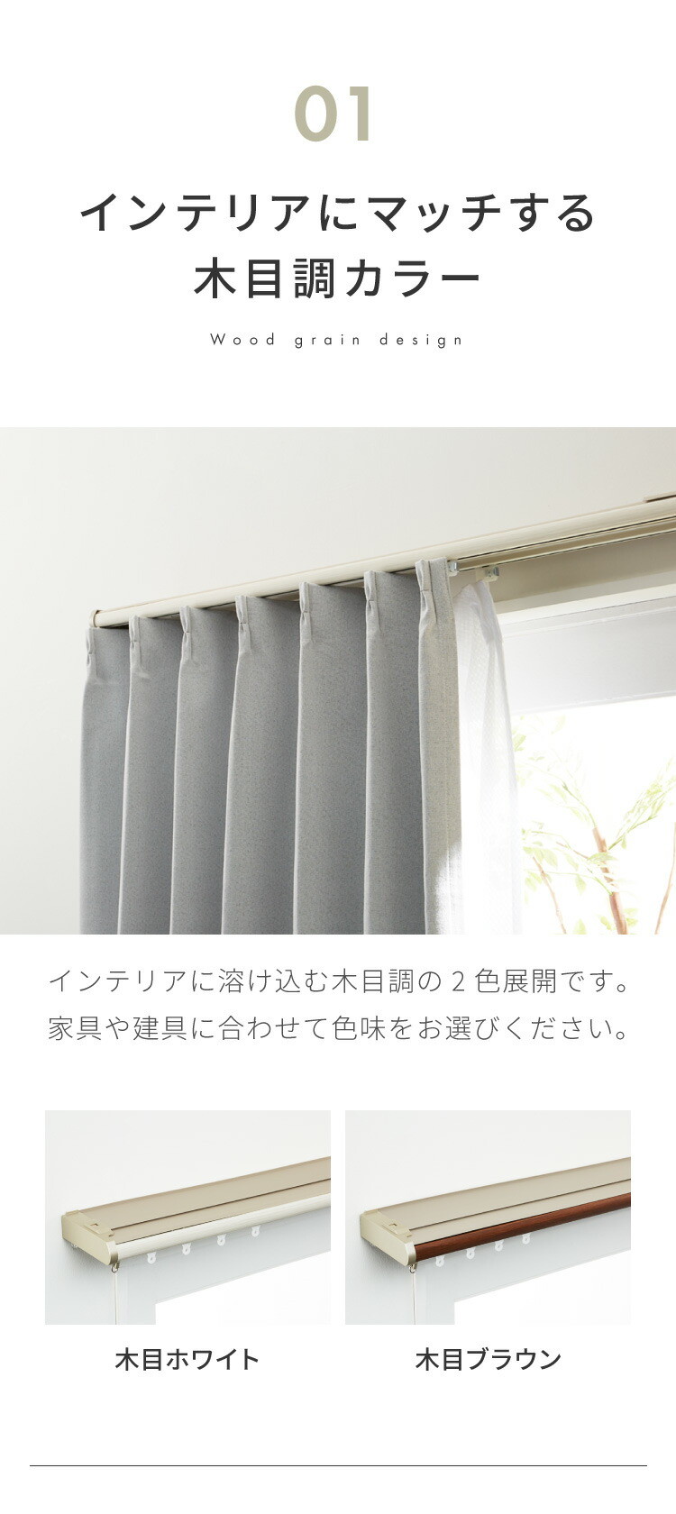 カーテンの開閉音が静かな木目調デザインカーテンレールです。