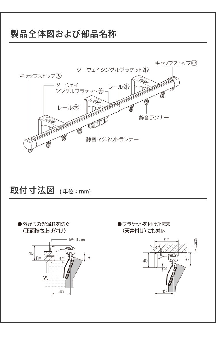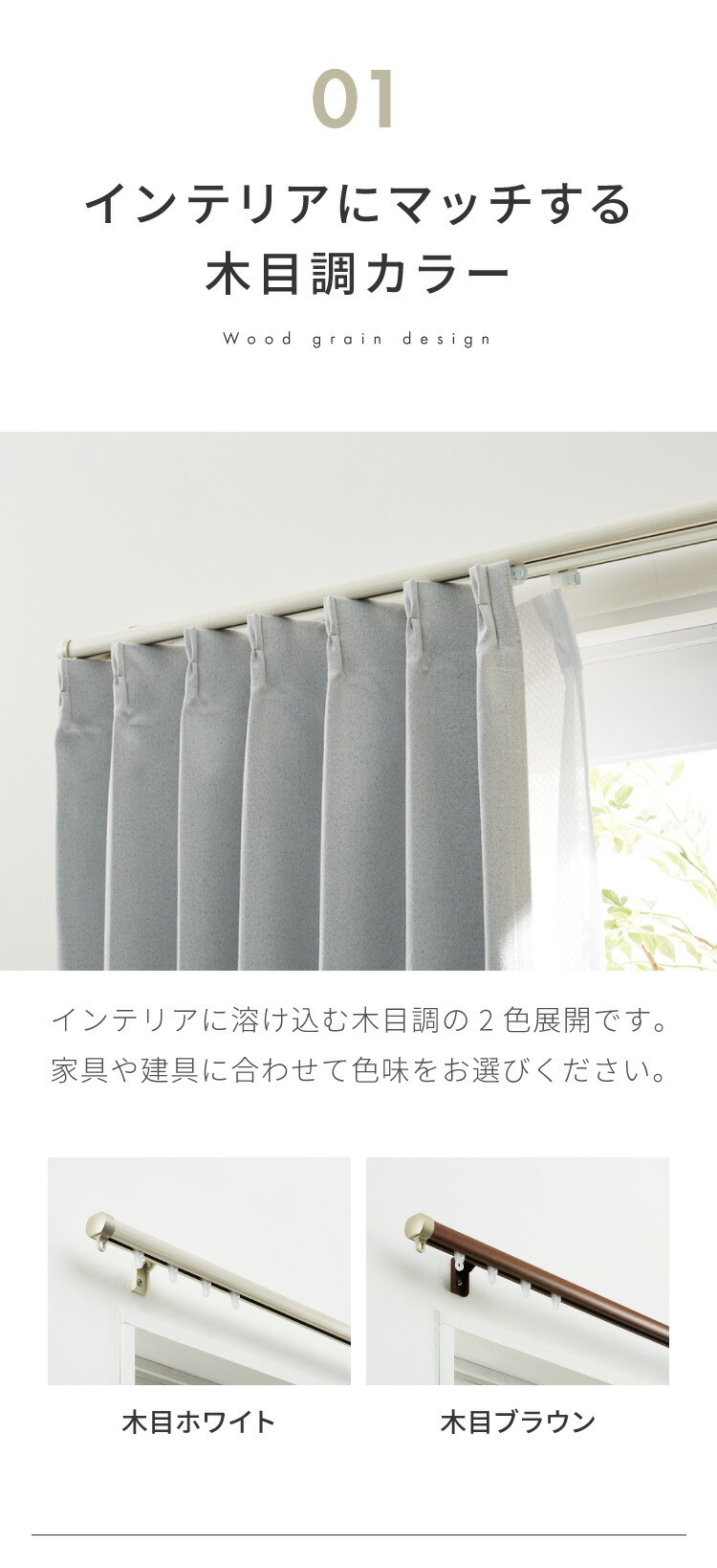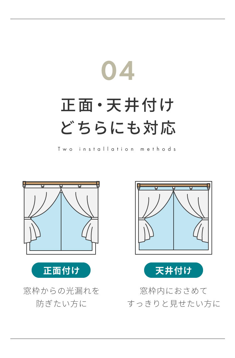 シングルタイプなので、ドレープカーテン・レースカーテンのどちらか1つだけをつるす場合におすすめ。