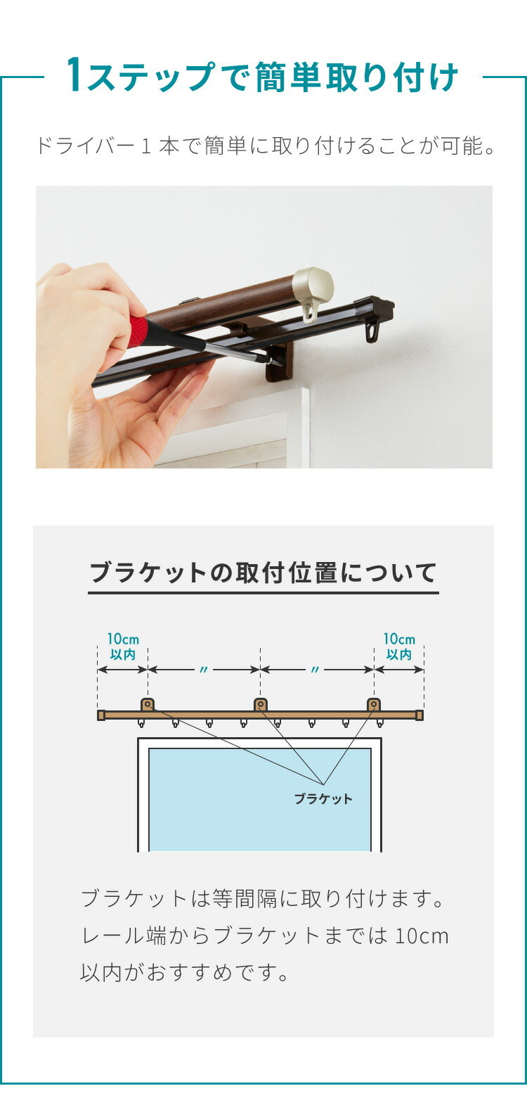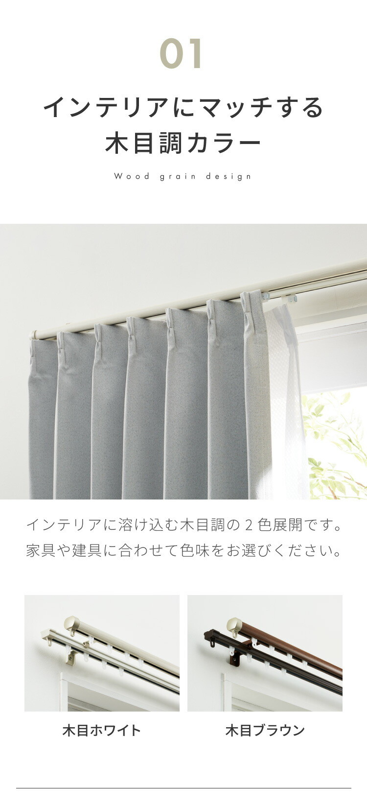 シングルタイプなので、ドレープカーテン・レースカーテンのどちらか1つだけをつるす場合におすすめ。