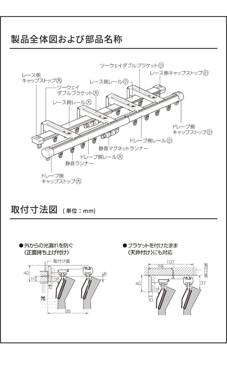 カーテンランナーは静音ランナーを採用。カーテンの開閉がスムーズで、開閉時の音も静かです。