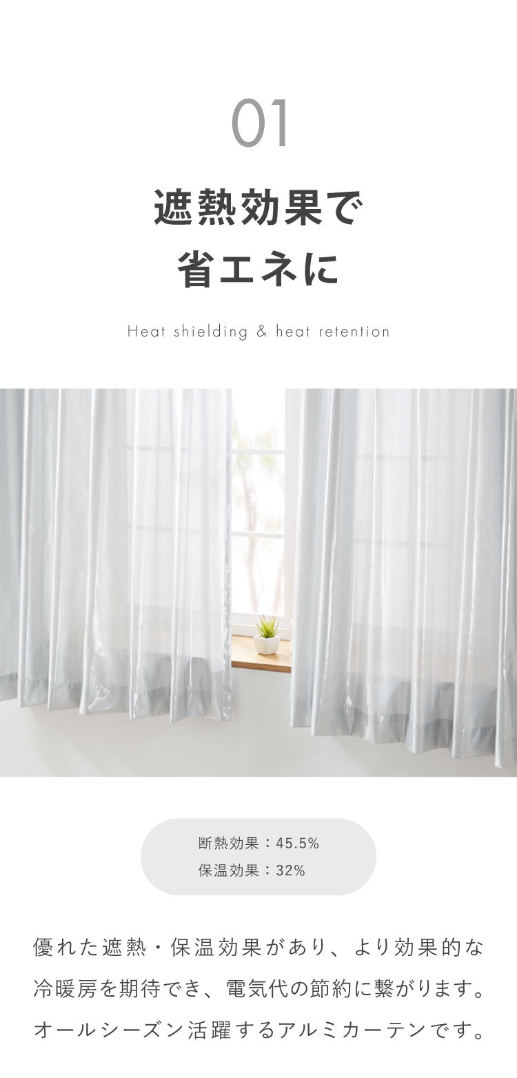 アルミカーテン 節電 断熱45.5% UVカット84.7% 幅100cm 遮熱 保温 洗濯可能 無地 通気性 採光 ティエラライトブルー 幅100×丈108cm2枚組