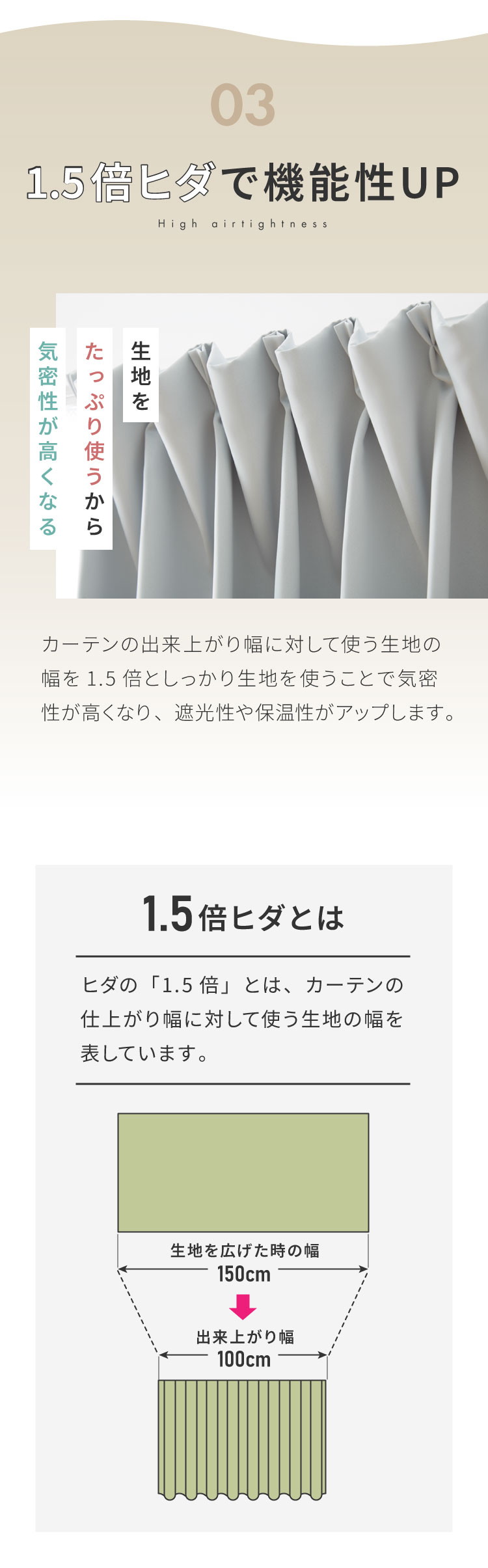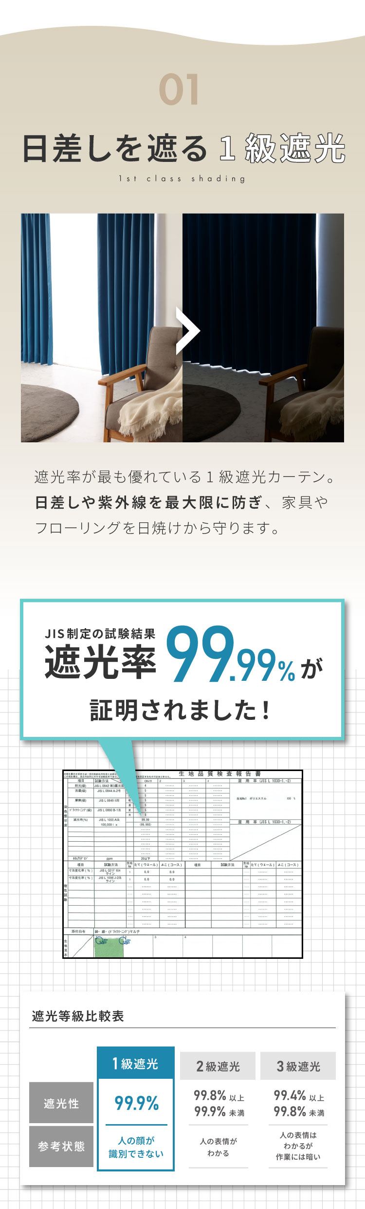 1級遮光、遮熱50%、保温30%(ドレープカーテン)