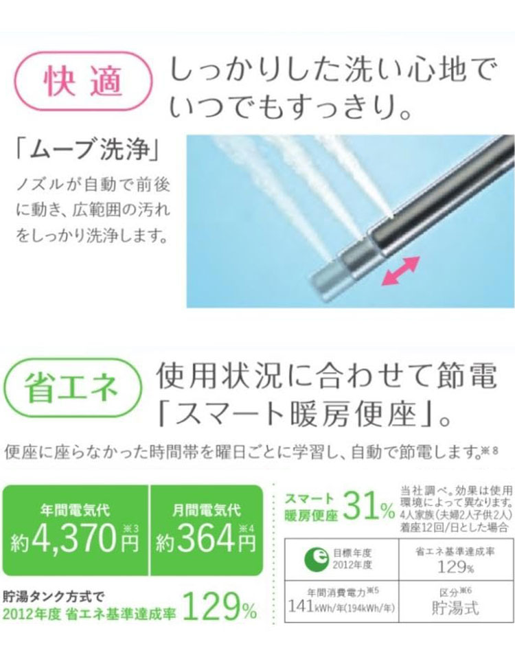 消費電力:292 W(本体:245 W・暖房便座:47 W )