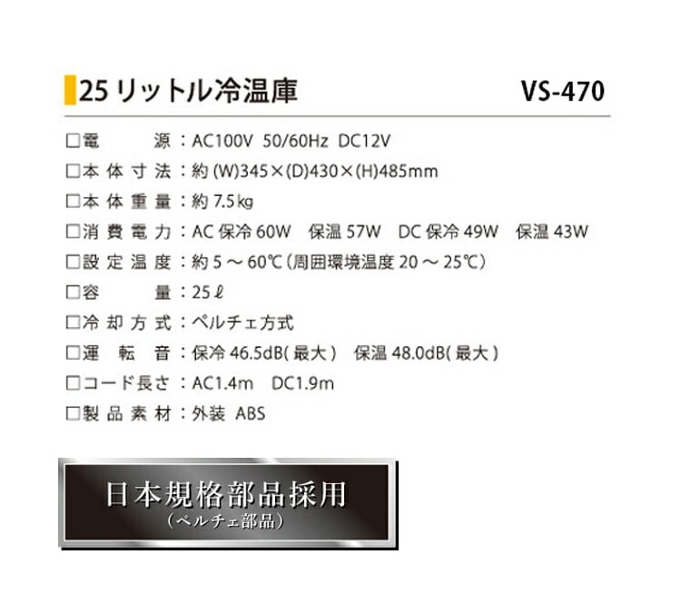 VERSOS ポータブル 冷温庫 HOT&COOL 25L VS-470