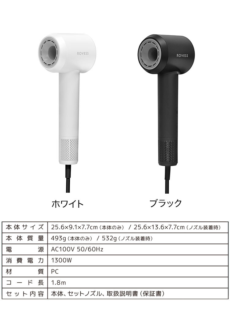 高速ヘアドライヤー 風量3段階 温度4段階 ベルソス ROVESS VERSOS VS-BT10 ホワイト