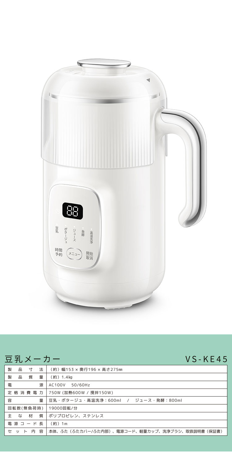 豆乳メーカー スープメーカー 高温洗浄 お手入れ簡単 簡易レシピ10品掲載 VS-KE45 ベルソス