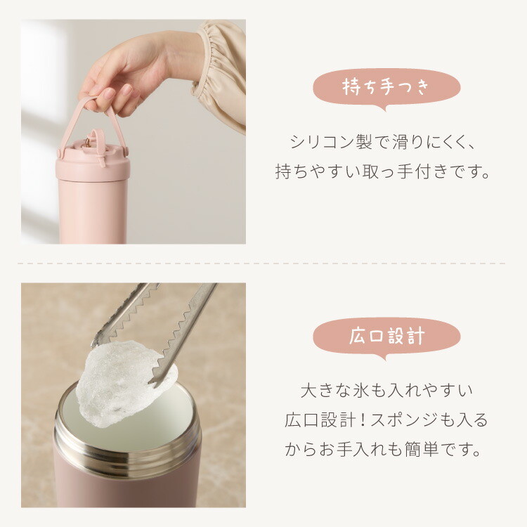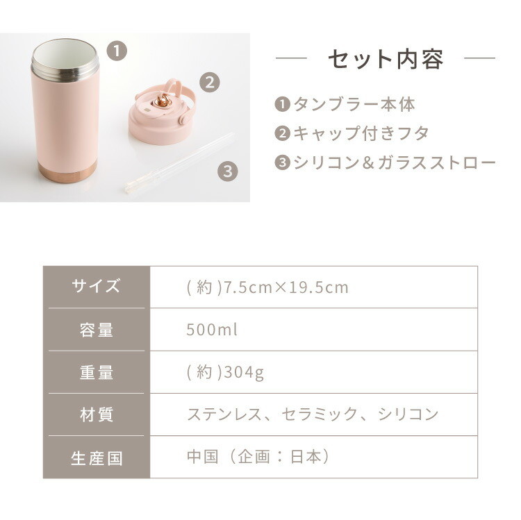 セラミックタンブラー 500ml ストロー付き フタ付き 3way 保冷 保温 水筒 カフェオレ