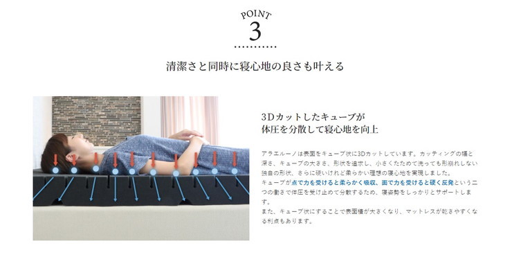 日本製 洗える 高反発 マットレス アラエルーノ 厚さ8cm ウレタン ウレタンマットレス シングル 体圧分散